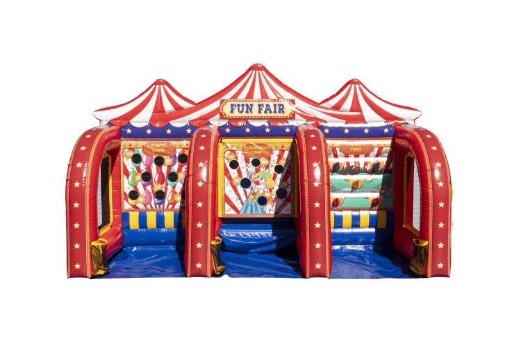 Our Carnival 3-in-1 combines three classic carnival challenges in one colorful, inflatable unit. Guests can rotate through each game station, testing their aim, accuracy, and hand-eye coordination. The bright design and festive theme make it a centerpiece attraction at any event.